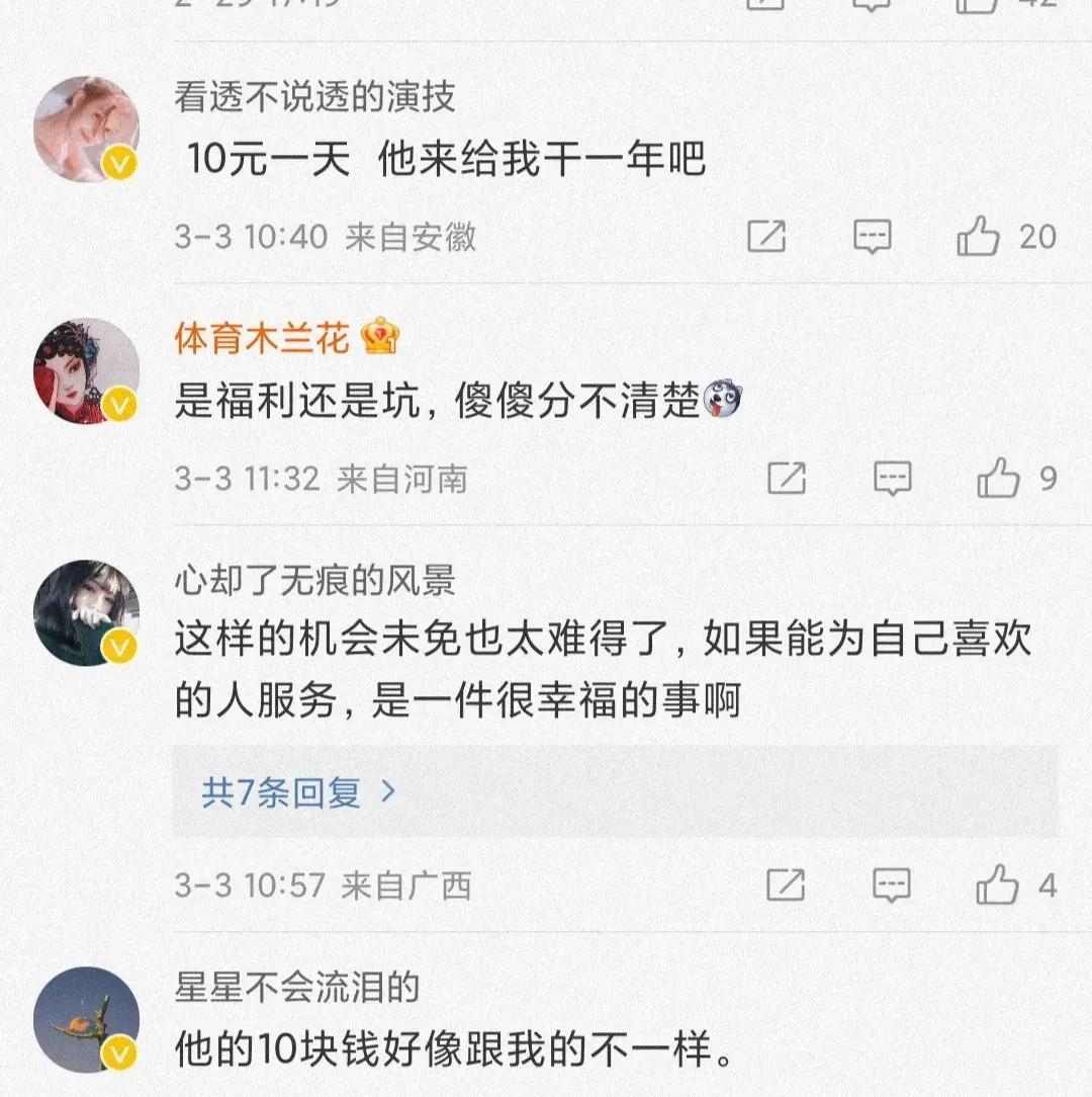 也有一些網友表示:可以花錢娛樂,但不能花錢上班,花10元一天上班, 那就讓她來給我幹一年試試吧,