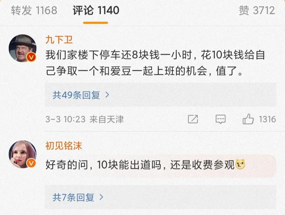 我們家樓下停車還8塊錢一小時,花10塊錢給自己爭取一個和愛豆一起上班的機會,值了。