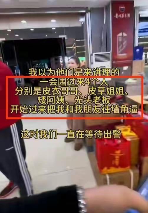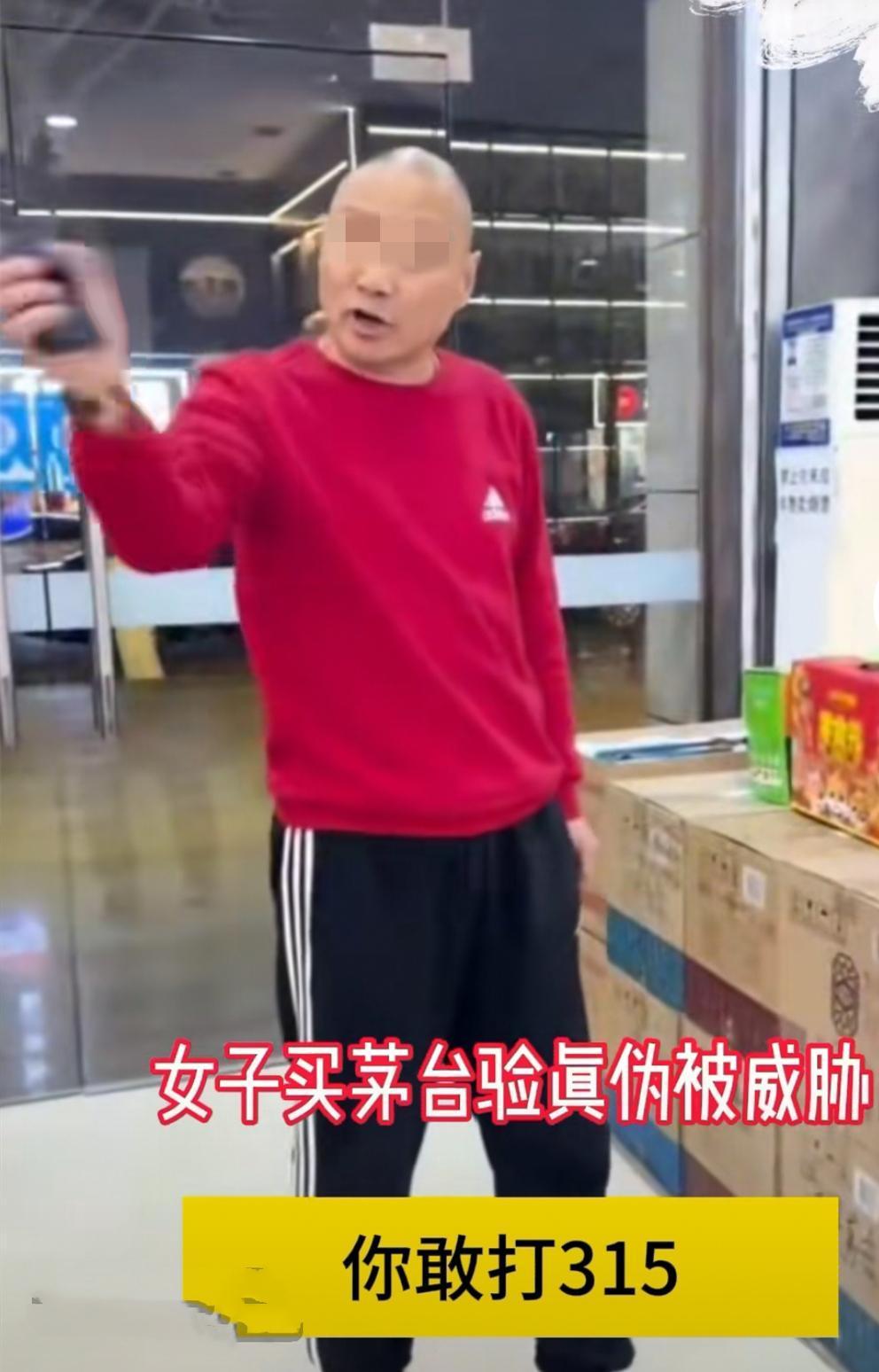 她這一提出就不得了,光頭店老闆就說不賣了,隨即他就動手搶女子手中的茅臺酒。