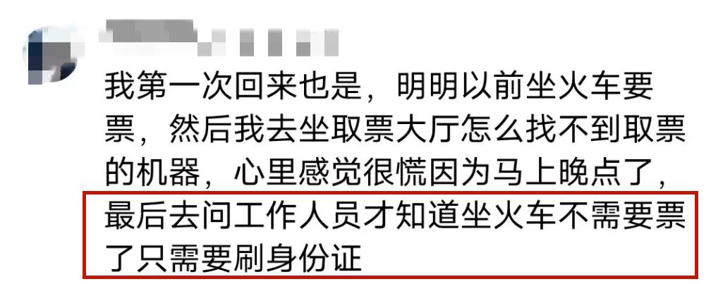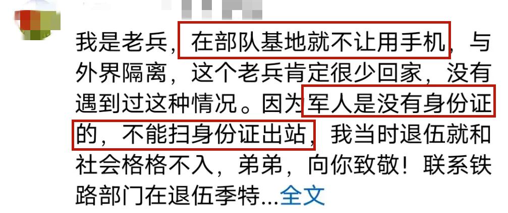一位老兵說他當兵第一次回家才知道坐火車已經不需要取紙質票了,只需要刷身份證就可以。
