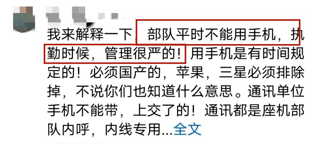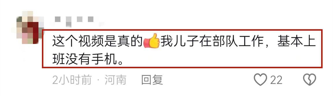 有軍人家屬說她兒子在部隊工作,基本上上班沒有手機。