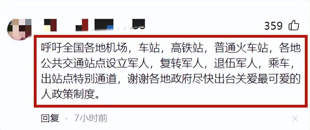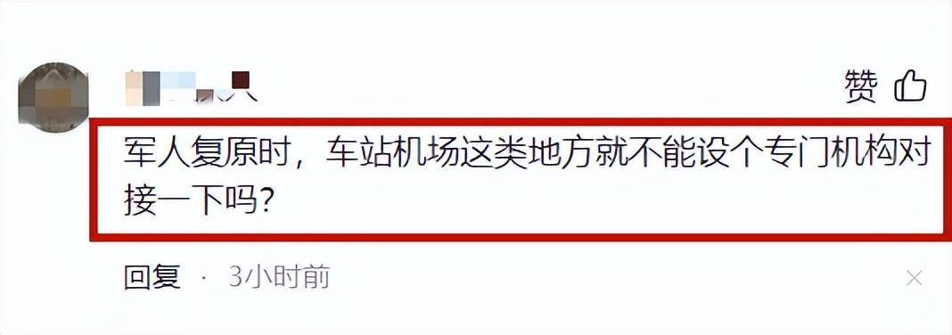 很多網友呼籲機場、高鐵、火車站等地方給軍人設置出站點特別通道。