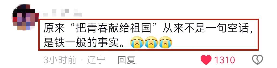也因此,很多網友在評論區留言“原來‘把青春獻給祖國’從來不是一句空話,是鐵一般的事實。”