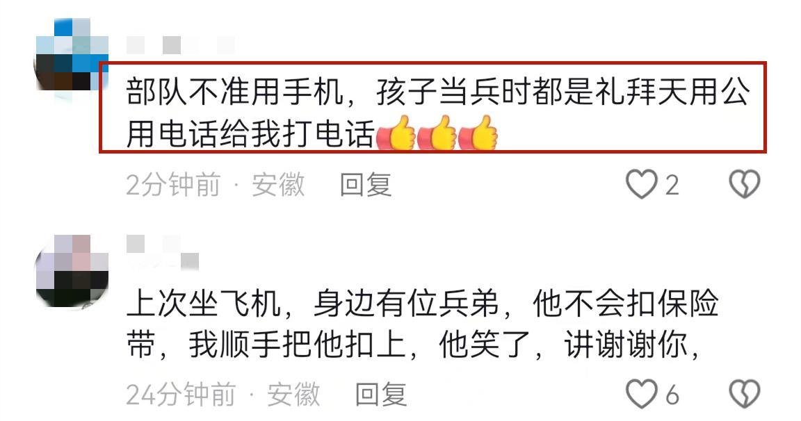 還有軍人家屬說部隊不準用手機,孩子當兵時都是禮拜天用公用電話給她打的電話。