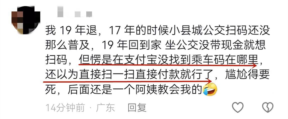 一位老兵說他退伍回家坐公交,以爲直接掃付款碼就可以,不知道還有乘車碼。