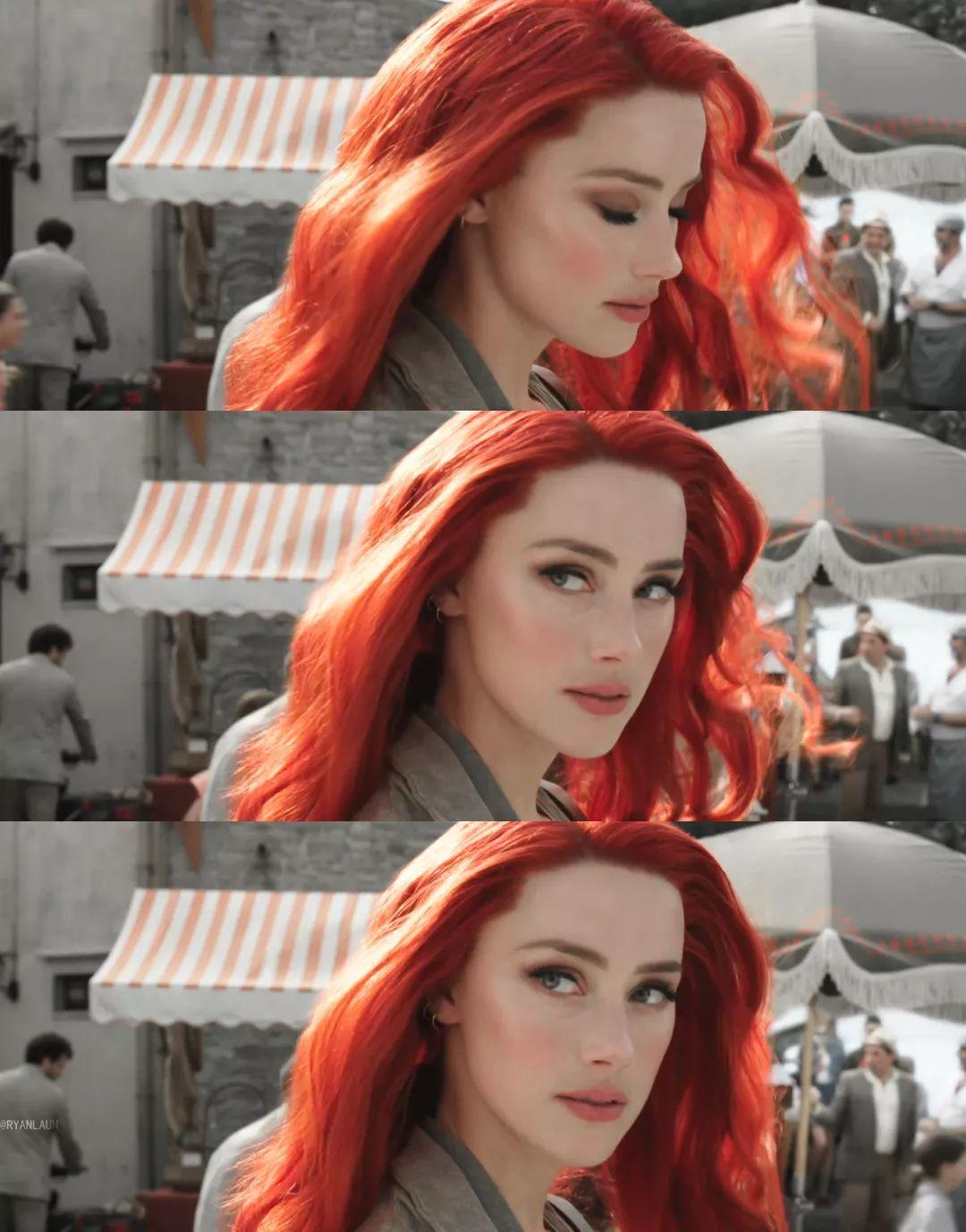 《海王》裏,一頭捲曲的紅髮加上綠色亮片包裹的衣服,性感無比。