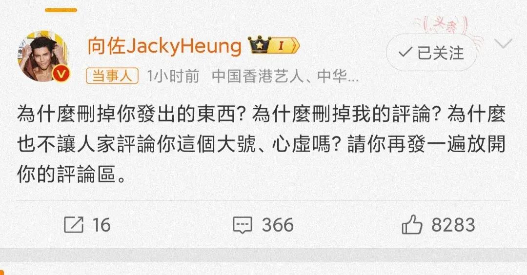 看到向佐生氣了,這位大V也慫了,不僅刪除了該條動態以及向佐的留言,甚至還關閉了評論區,看來是真的害怕了。