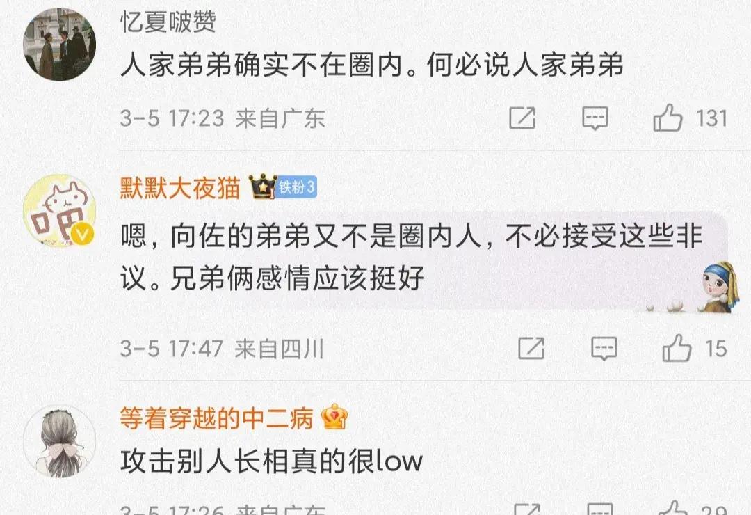 其實,向佐並不是特別小氣的人,平時也看到有很多人吐槽,也沒生氣,這次爲了弟弟,不再忍耐,怒懟這位大V,霸氣維護自己的親人,也算個硬漢。