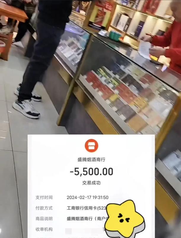 在挑選了2瓶飛天茅臺後,女子支付了5500元。