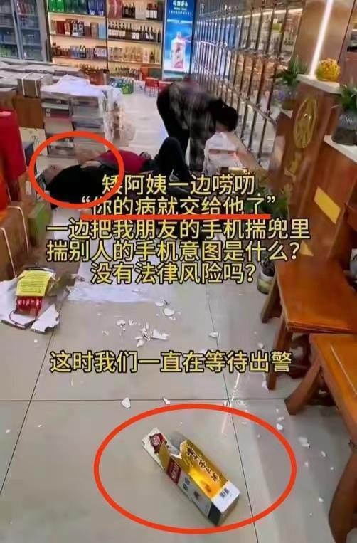 她這一提出就不得了,光頭店老闆就說不賣了,隨即他就動手搶女子手中的茅臺酒。
