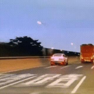 根據視頻內容可知,事發於3月3日,彼時在廣東的某高架橋上,一輛轎車行駛在第三車道上,在他的前方有一輛大貨車在第二車道行駛。