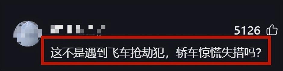 有人說“這不是遇到飛車搶劫犯,轎車驚慌失措嘛。”
