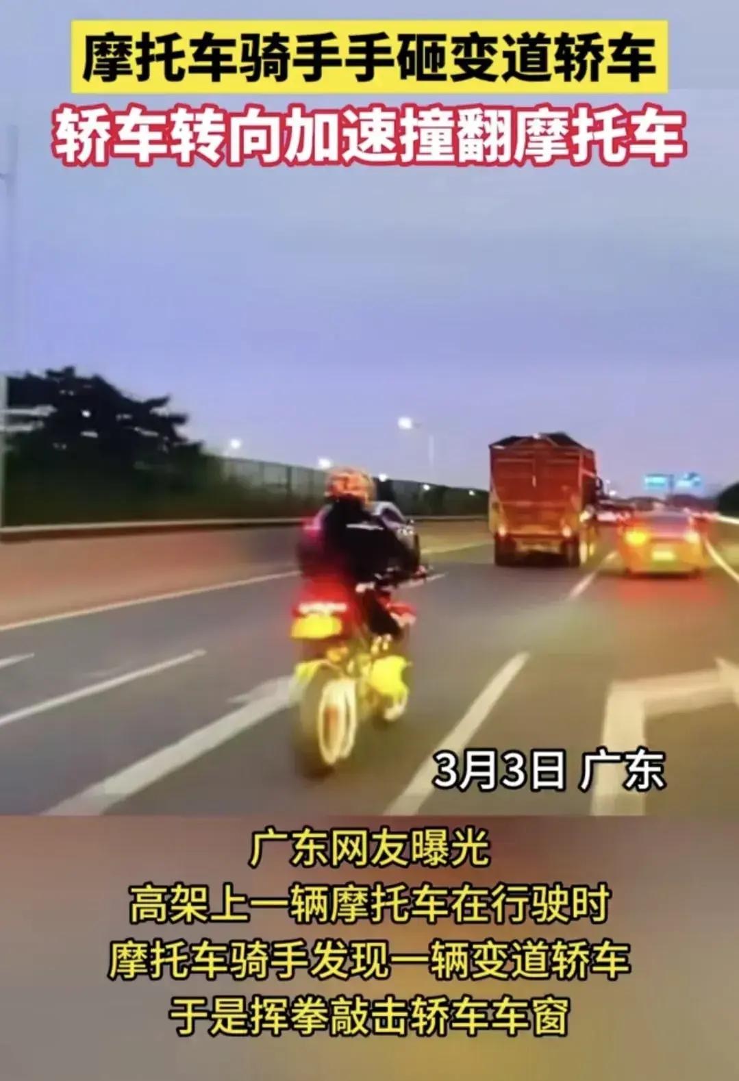 太嚇人!摩托車手砸轎車後被撞翻,網友炸鍋,廣東交警評論區淪陷