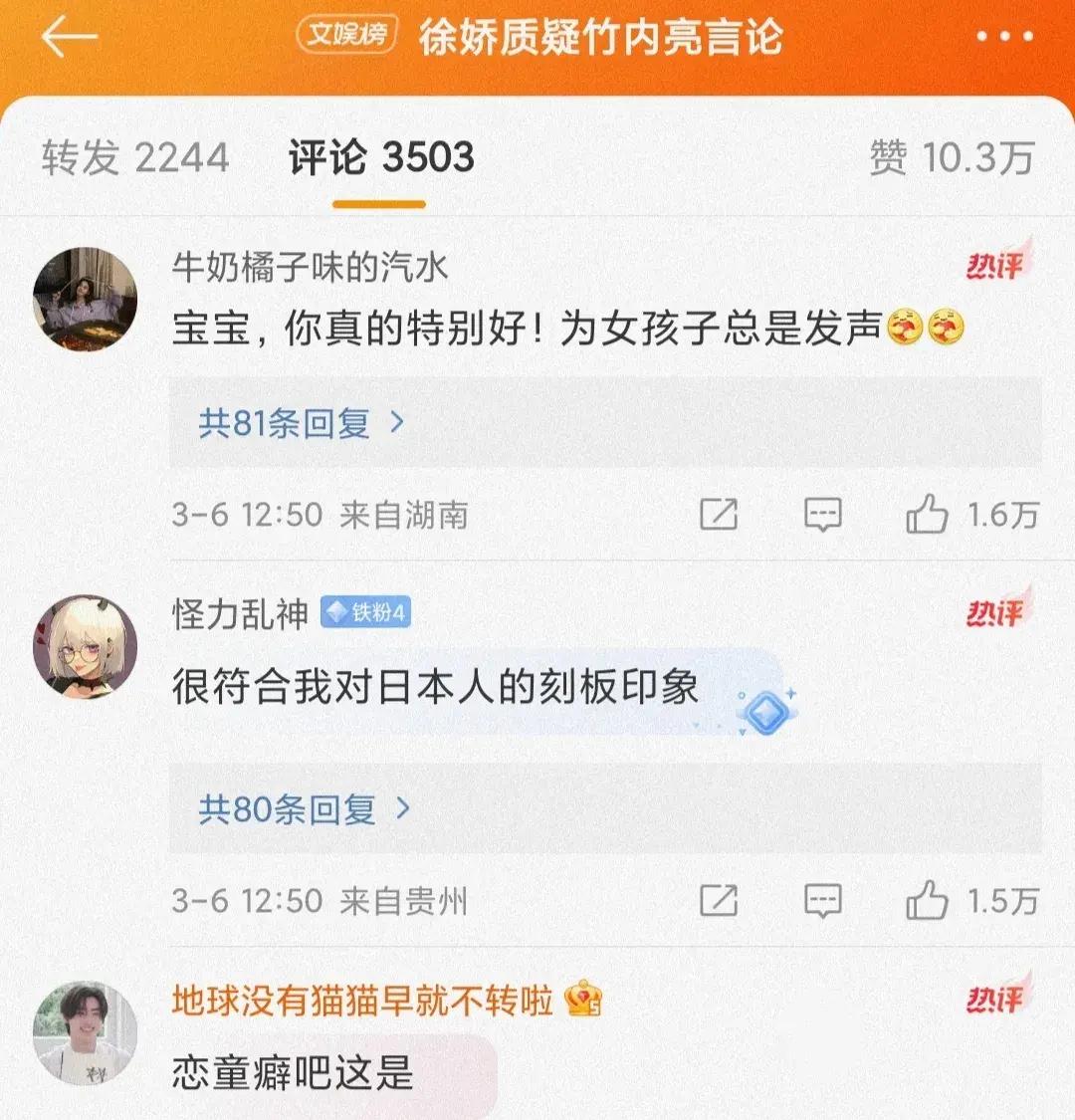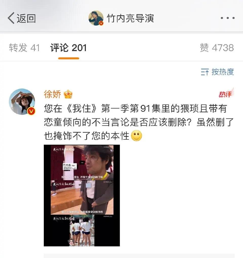真敢說!女星徐嬌發文質疑竹內亮言論,還跑到評論區留言