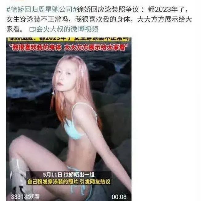 去年,徐嬌也曾因爲在社交平臺曬出一組泳裝照,引發了爭議,當時回應:都2023年了,女生穿泳裝不正常嗎?我很喜歡我的身體,大大方方顯示給大家看!