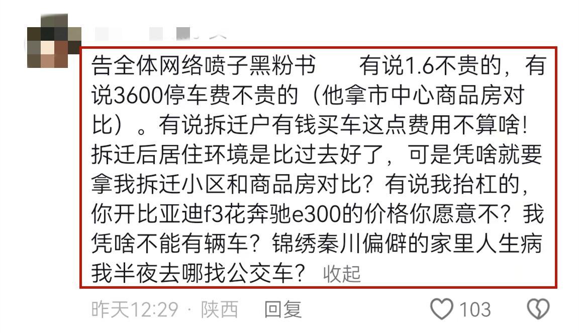 還有陝西的一個網友說他們的小區也是回遷小區,業主們維Q7年沒交物業費,目前小區電梯、道路、草坪無費用維護已經破爛不堪,小區裏的閒置房也不好出租。該網友認爲最好的辦法是解決問題,而不是極端化。