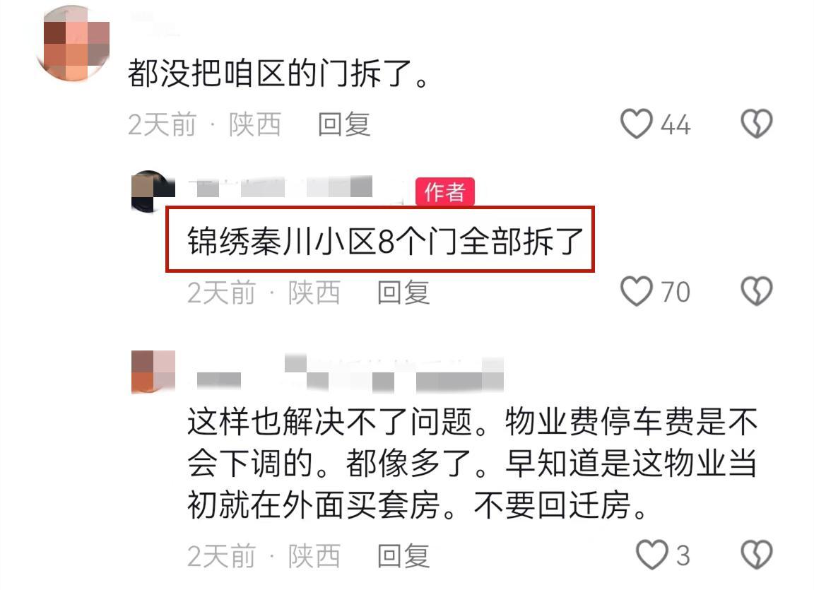 咸陽出的這個事情與一個名叫錦繡秦川的回遷小區有關,該小區一年3600元的停車費引發衆怒,小區的業主們將小區的大門全拆了。