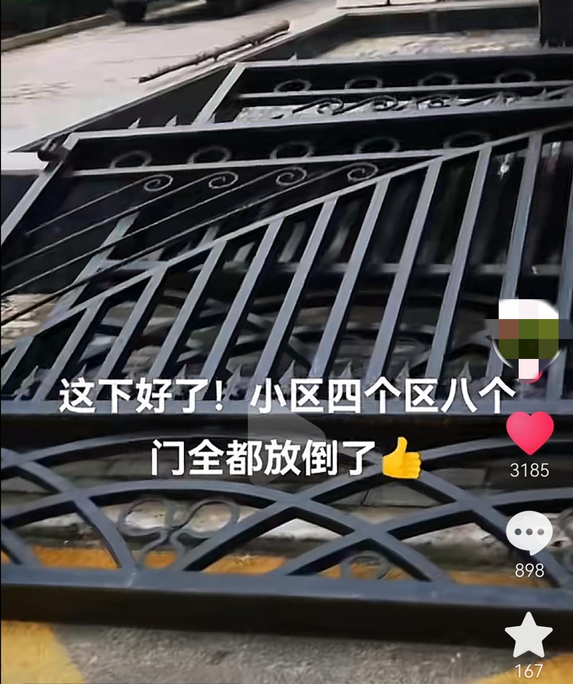 根據目前該小區業主在網絡上的發佈的視頻,該小區的業主們聯合起來將小區的大門拆了,並且不是拆一個門,而是將小區裏的8個門全部拆了。