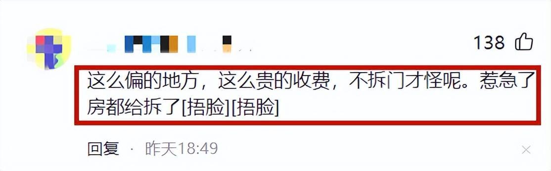 有網友直言“這麼偏的地方,這麼貴的收費,不拆門纔怪呢。惹急了房都給拆了。”