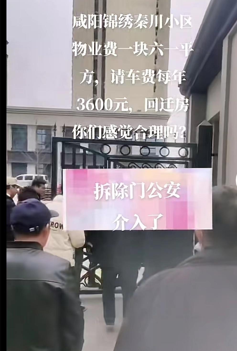 咸陽出的這個事情與一個名叫錦繡秦川的回遷小區有關,該小區一年3600元的停車費引發衆怒,小區的業主們將小區的大門全拆了。