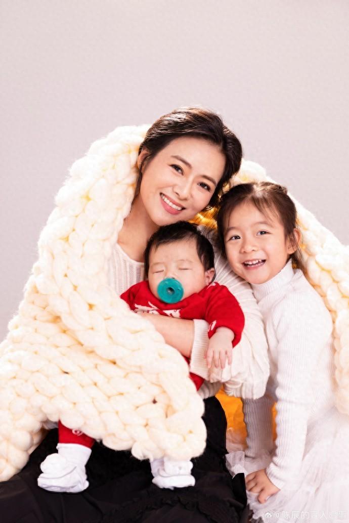 今年初,陳辰正式官宣自己家庭升級爲一家四口。前幾天,陳辰正式攜兒女一起亮相,她在微博上po出了自己和孩子的寫真。