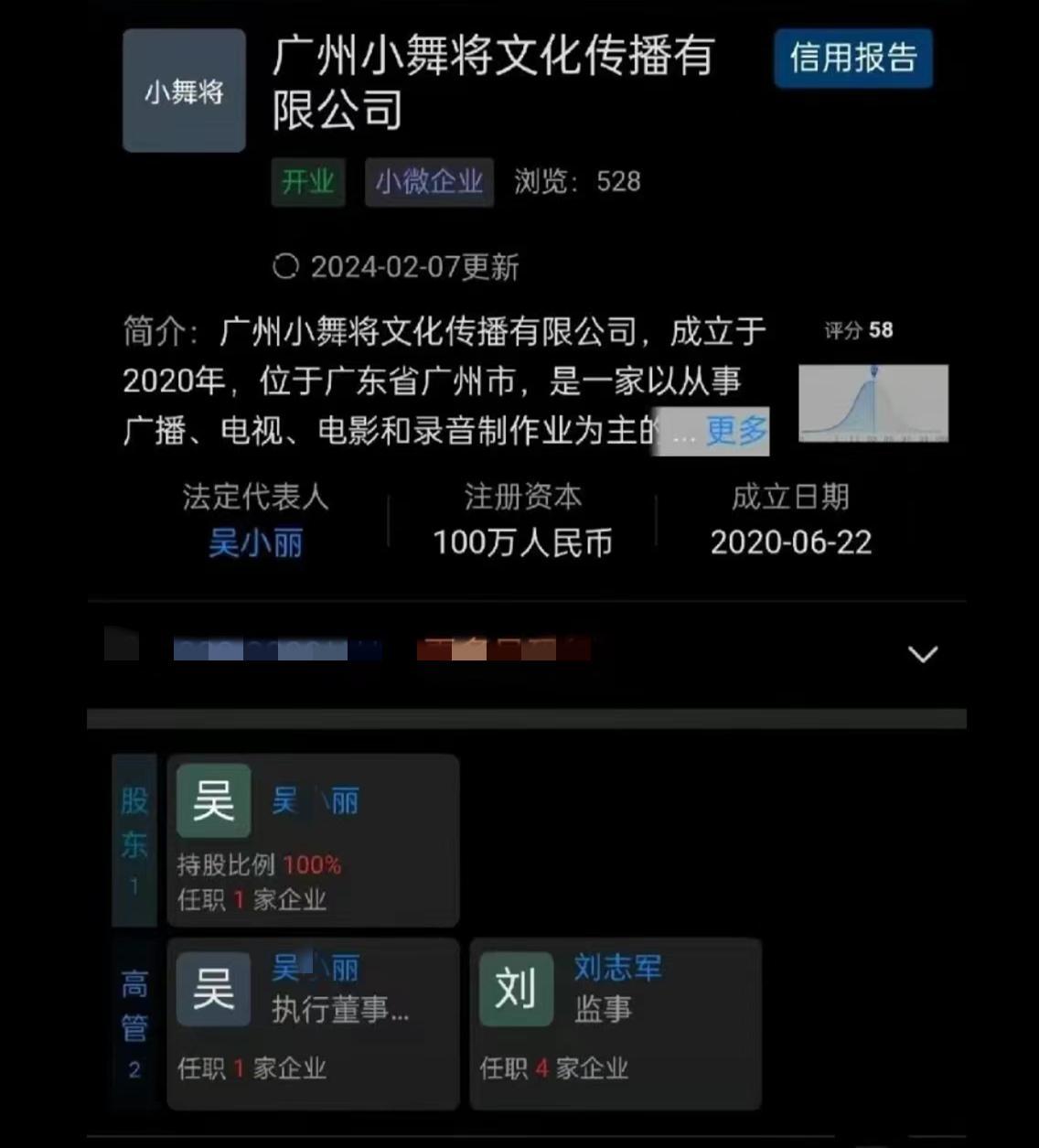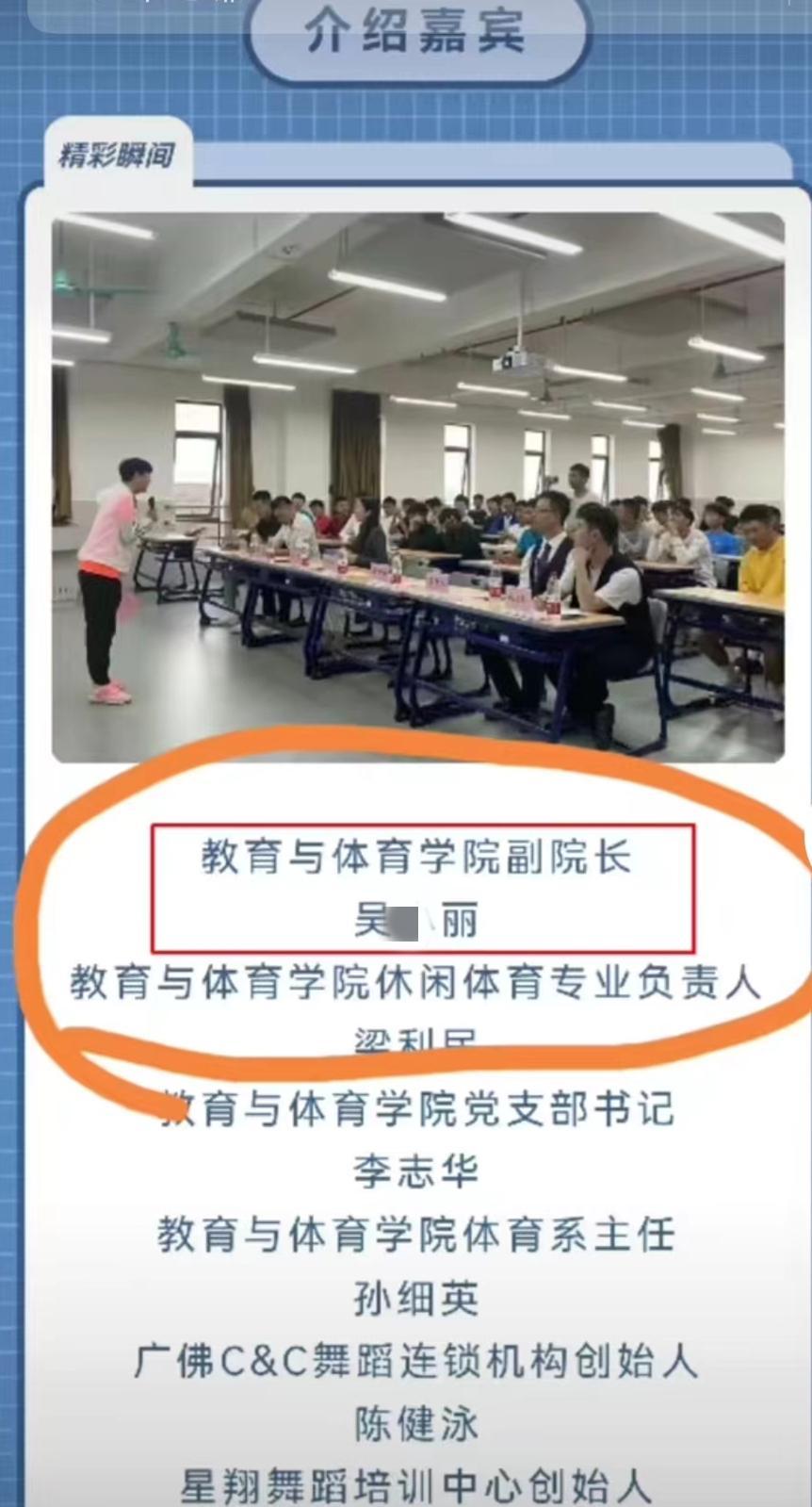 有網友扒出小舞將文化藝術有限公司的老闆吳某麗是廣東白雲學院教育與體育學院副院長。