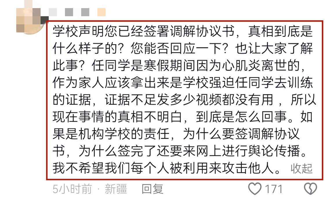 看到任穎潔父親的發聲,網友們對任穎潔的突然離世感到惋惜,對她的家人深表同情,對涉事學校充滿了憤怒。
