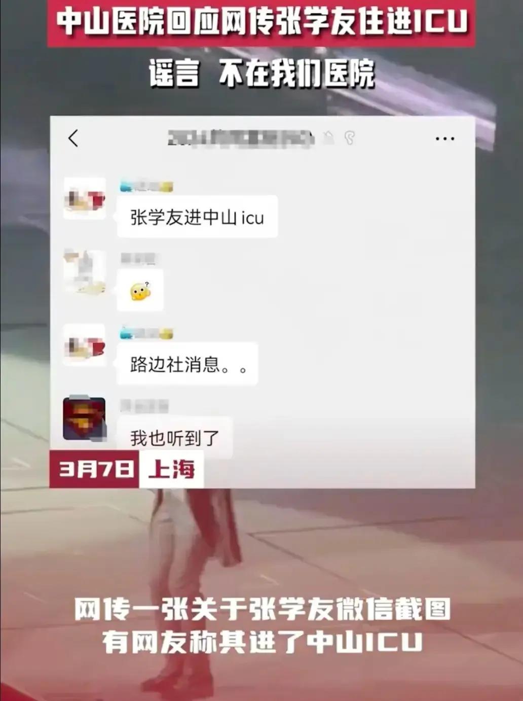 一些網友紛紛猜測原因,網上甚至傳出張學友住進中山醫院ICU的消息,讓粉絲非常擔心,不過,院方工作人員予以否認。