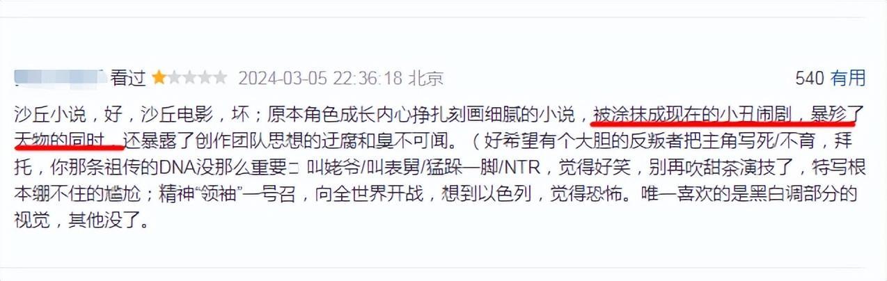 原著細膩刻畫的小說,被塗抹成現在的小丑鬧劇,暴殄天物