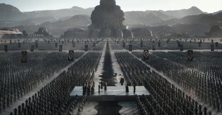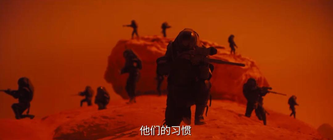 特別是導演熱衷於巨物美學,朦朧的視線下,從天而降的飛船,神出鬼沒的沙蟲,整齊而又龐大的軍團,神祕而又給觀衆帶來強烈的危機感。