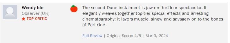 英國《觀察家報》的影評人在爛番茄上的評論就被置頂了: