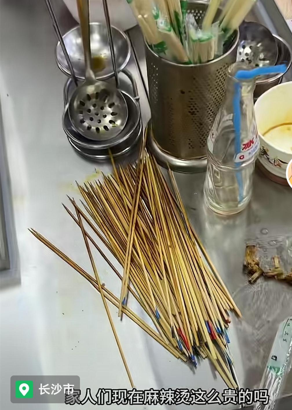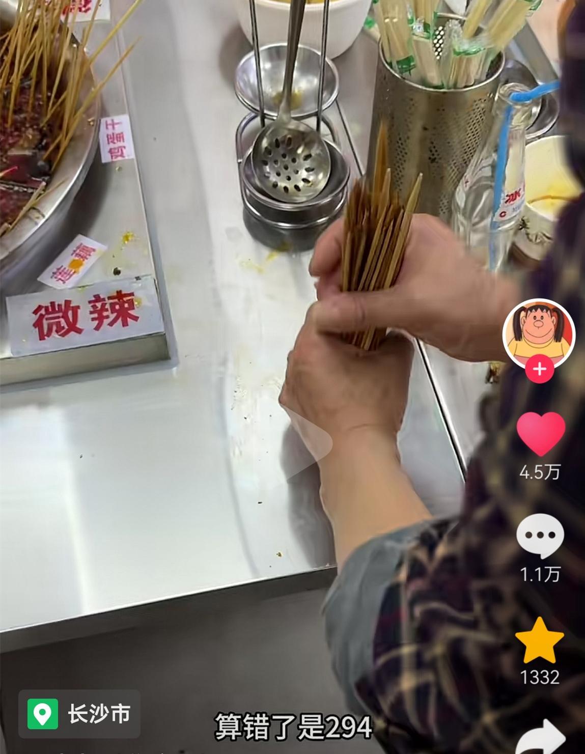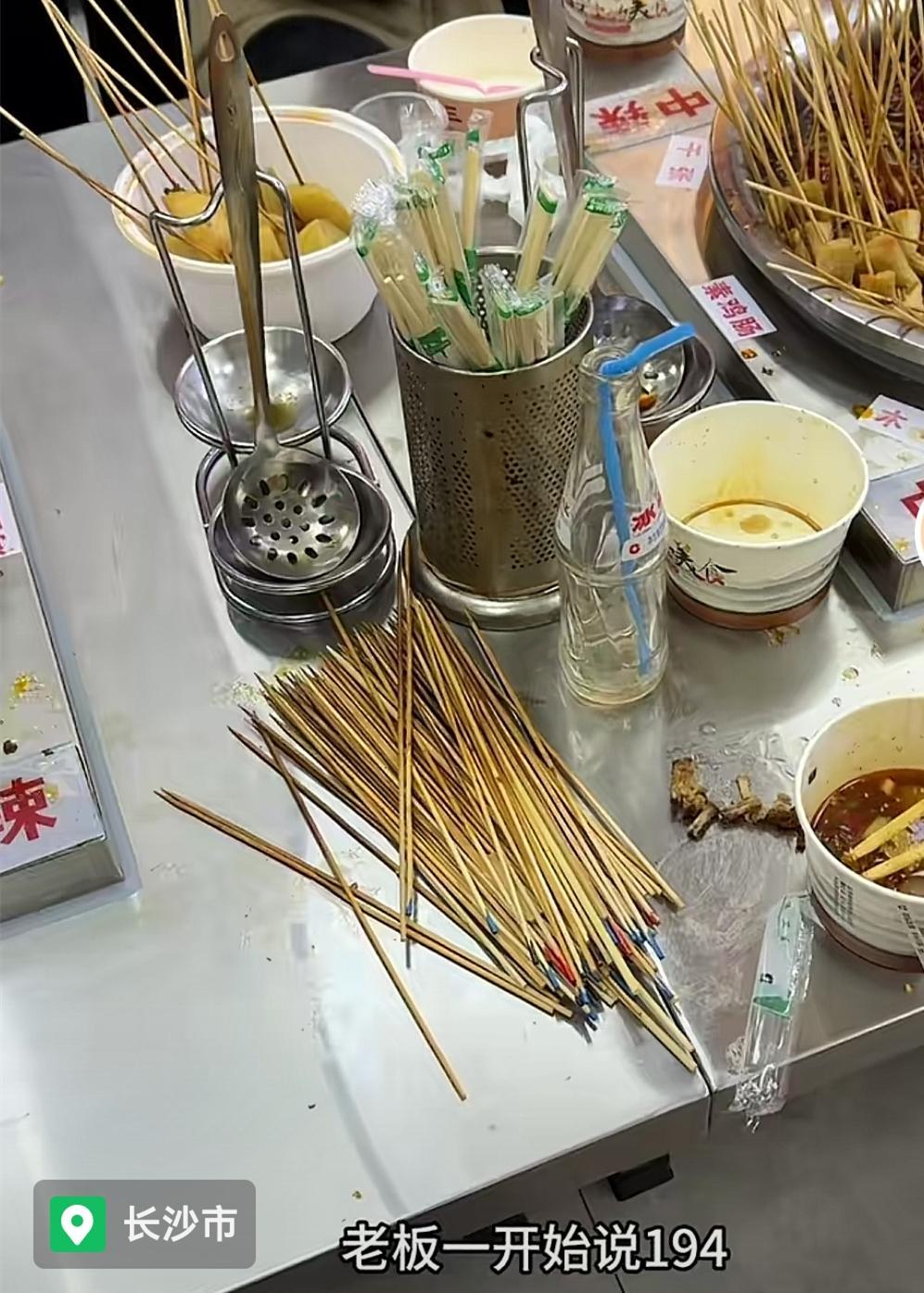 不過,網友將現場拍攝的視頻發佈到了網絡上,提醒大家出去喫麻辣燙自己要數籤子,這樣靠譜一些。