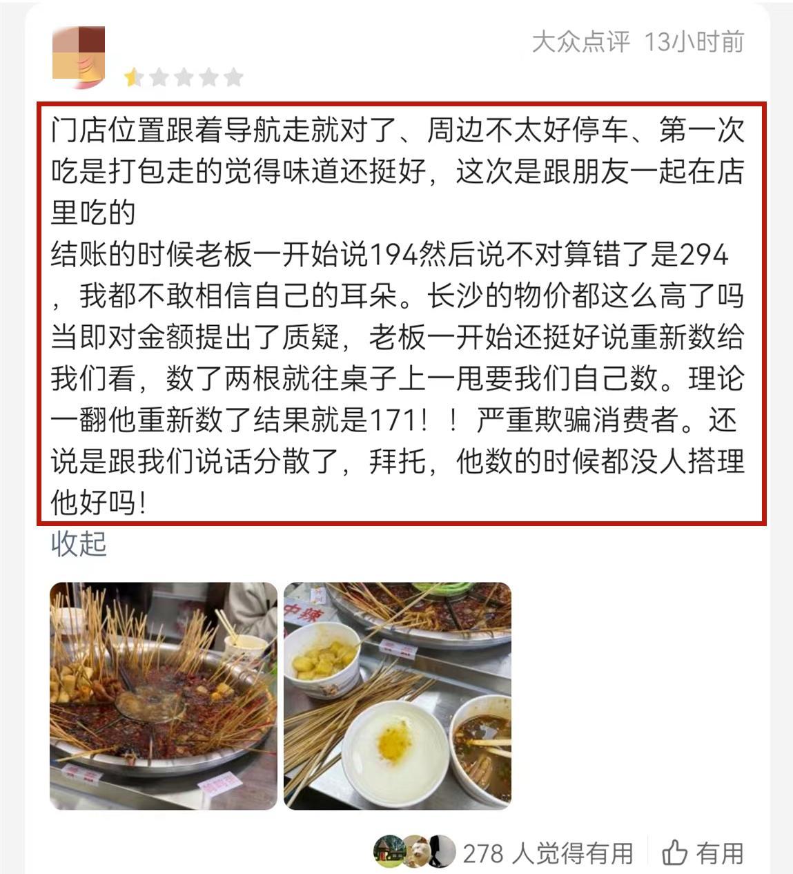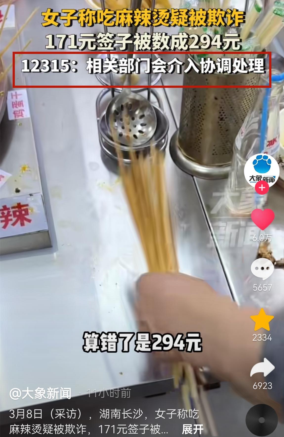 更多網友更是直言作爲經營麻辣燙的店老闆,不可能看不出171元的籤子和294元的籤子數量的區別,還說店老闆是慣犯,坑了不少人,只是這次被發現了。