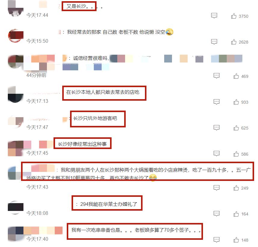 很多網友吐槽在長沙喫麻辣燙被宰了,直言長沙經常出這種事情,還有本地網友說長沙人只敢去常喫的店喫。