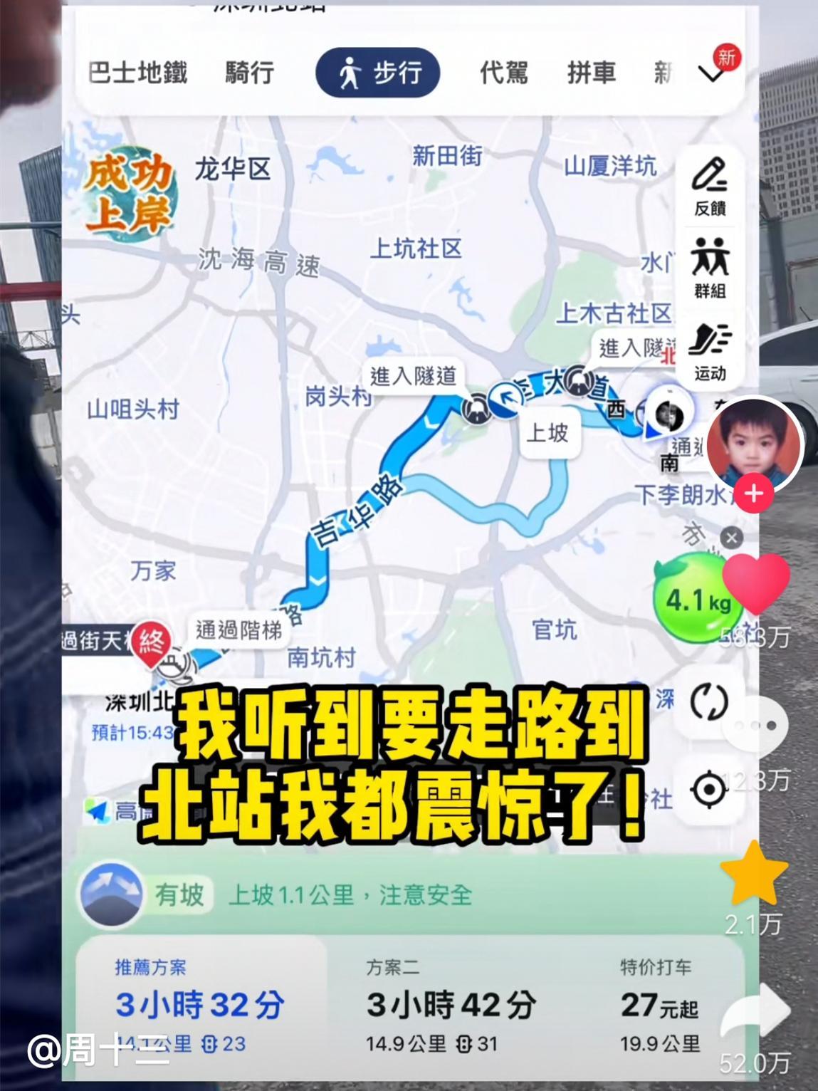 周十三打開地圖查了查從他們所在的地方走到深圳北站需要3小時30多分鐘。