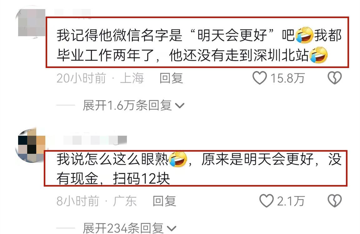 有網友說“我說怎麼這麼眼熟,原來是明天會更好,沒有現金,掃碼12塊。”