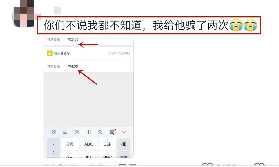 還有很多網友曬出給大爺的轉賬截圖,其中一位網友還被大爺騙了2次。