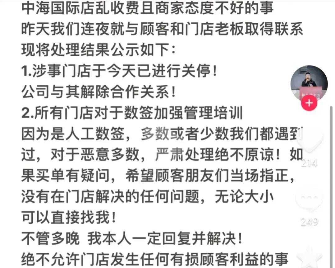 該品牌運營希望爆料網友能夠考慮到其他無辜的該品牌的其他店老闆,刪除視頻,將這件事情的影響降到最低。