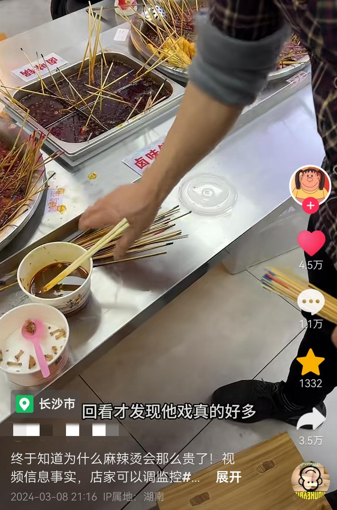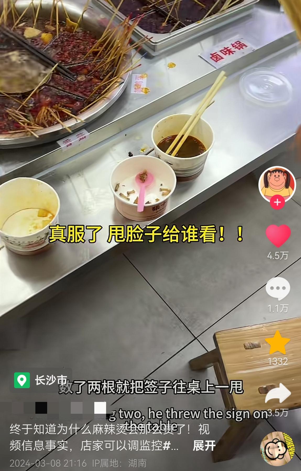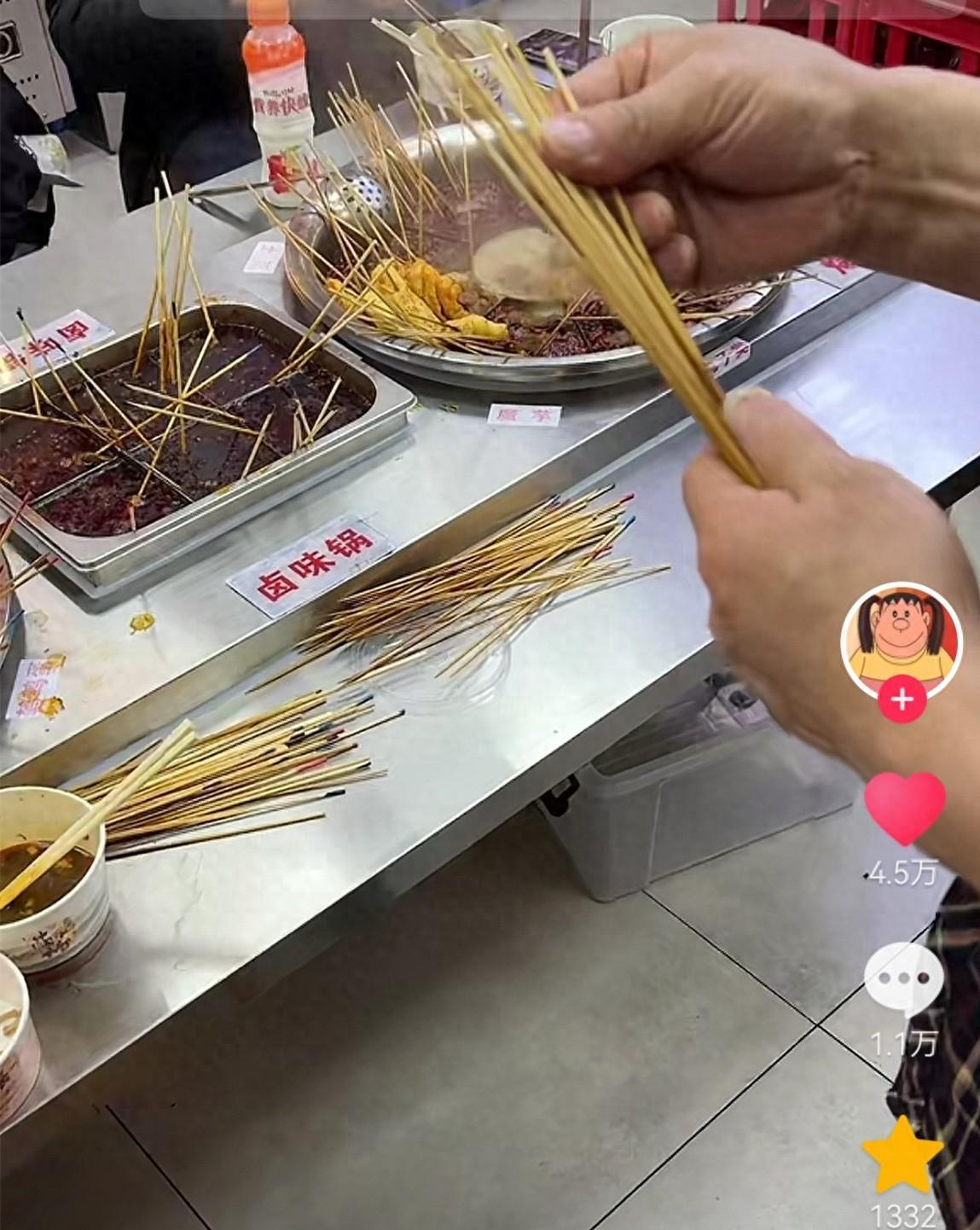 不過,網友將現場拍攝的視頻發佈到了網絡上,提醒大家出去喫麻辣燙自己要數籤子,這樣靠譜一些。
