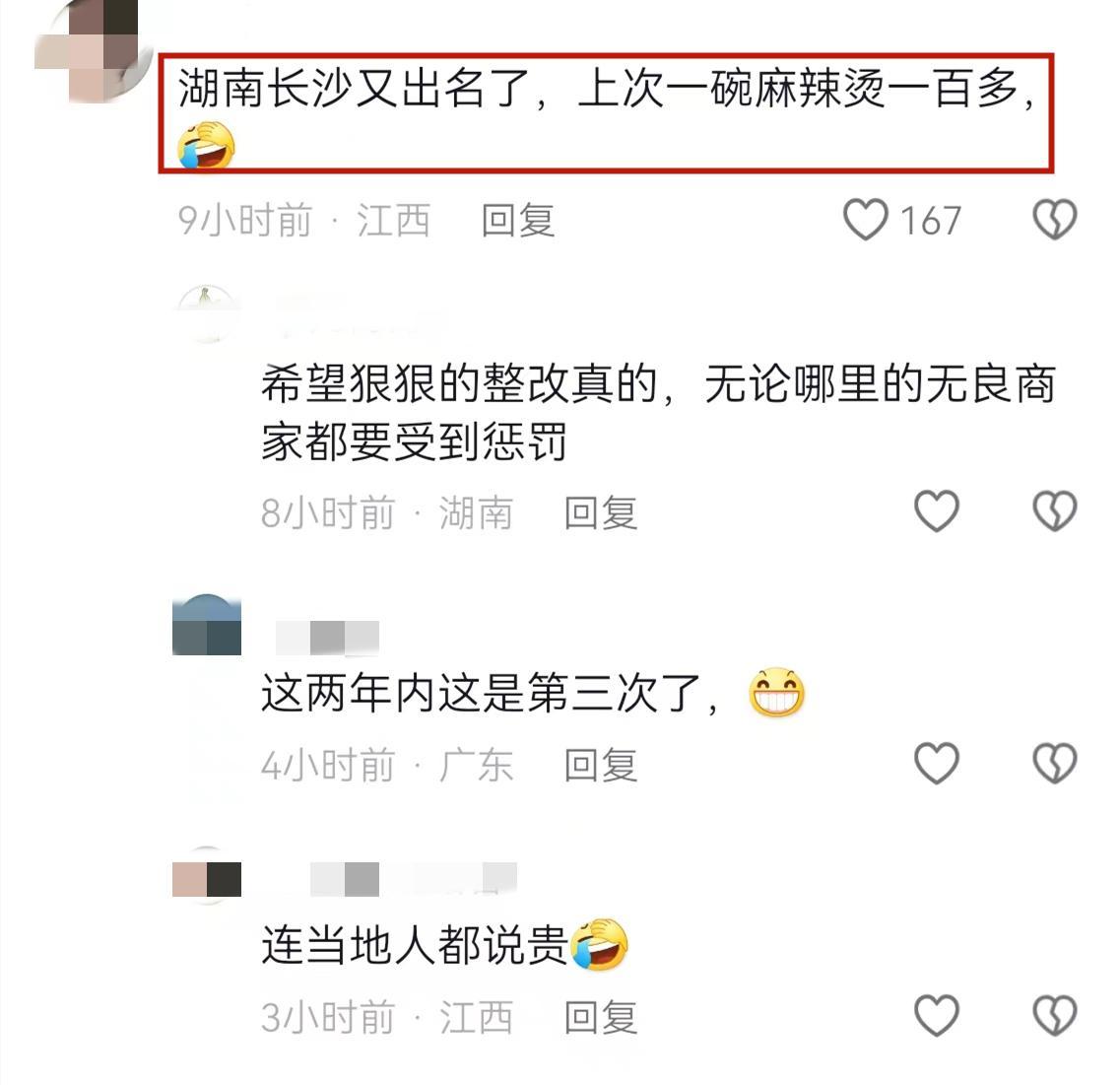 很多網友吐槽在長沙喫麻辣燙被宰了,直言長沙經常出這種事情,還有本地網友說長沙人只敢去常喫的店喫。