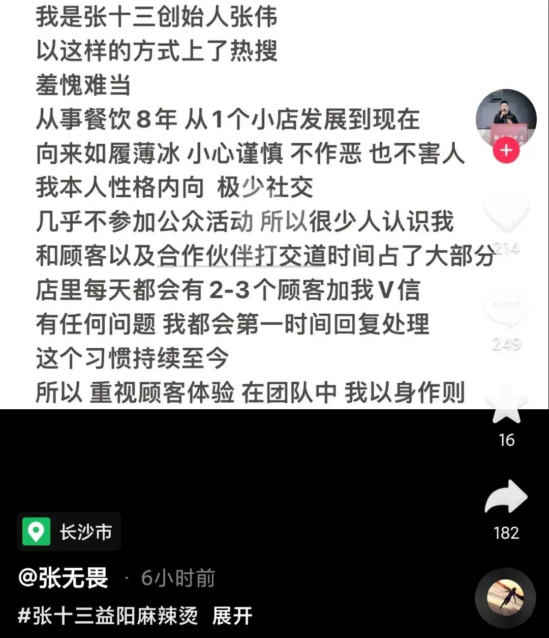 隨後涉事門店店老闆和張十三麻辣燙的創始人張偉相繼道歉。