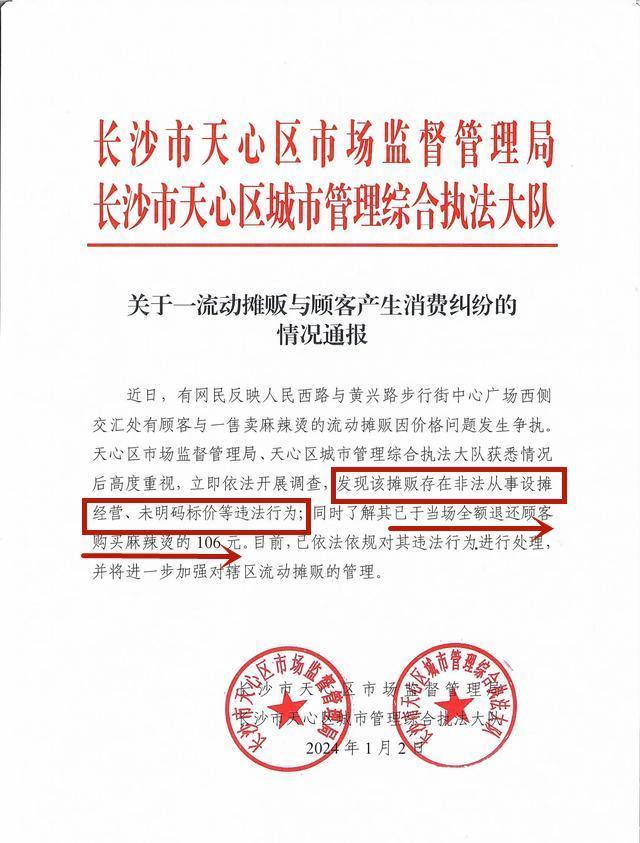 最終,因爲這件事情上了熱搜,越鬧越大,長沙相關部門在2024年1月2日發佈了針對此事的情況通報。