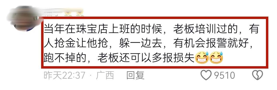 有網友覺得他可能是精神病,所以敢在光天化日之下跑去商場金店搶劫。