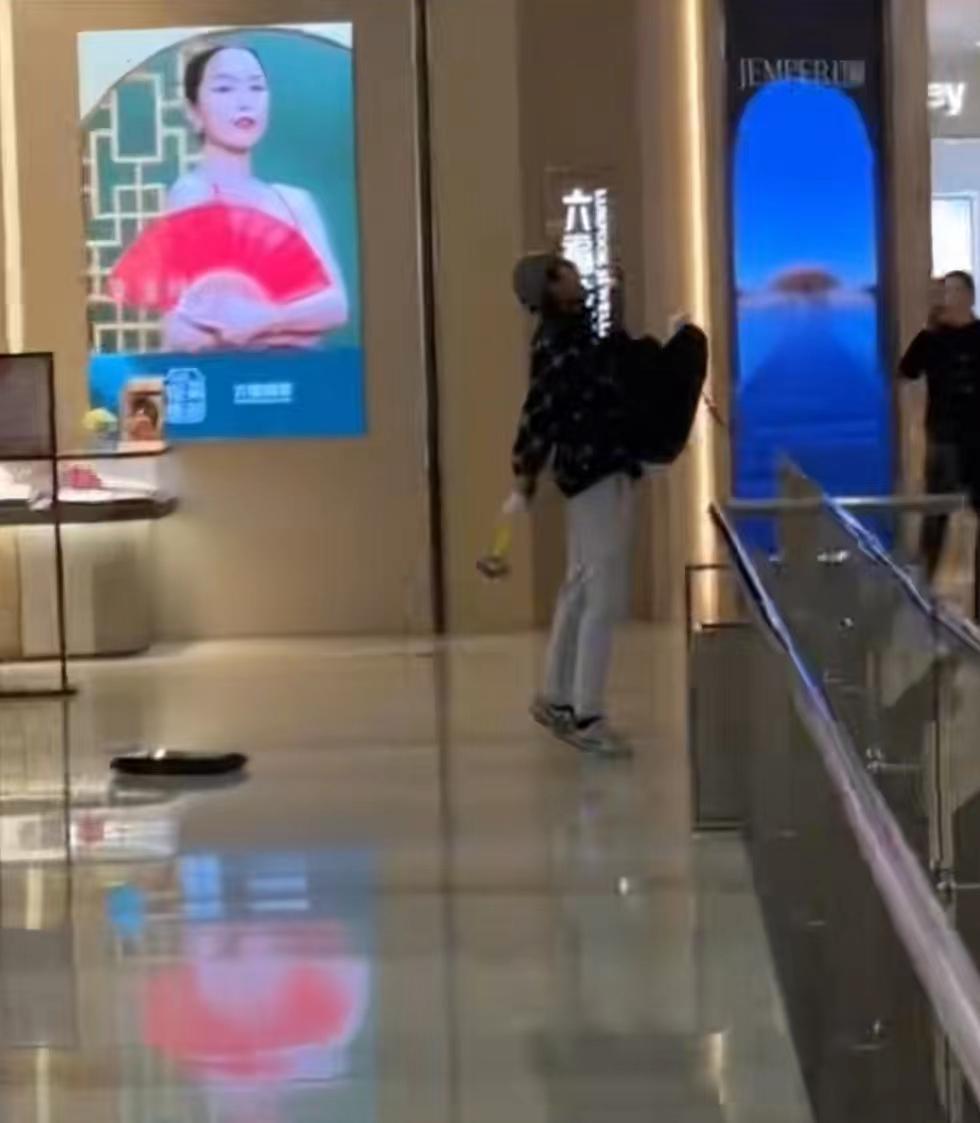 面對這種情況,六福珠寶店的工作人員全部撤離了,商場的保安也沒有采取任何措施,商場裏的路人們也不敢靠近他。