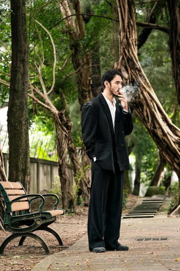 幹練的髮型+寬大的老西裝,阮經天往那兒一站,就由內而外散發出江湖殺手的氣質。