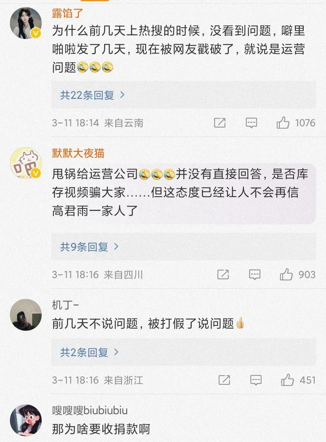 大概意思就是經紀公司的問題,然而,面對高君雨媽媽的回應,一些網友並不買賬,提出來很多質疑,紛紛留言: