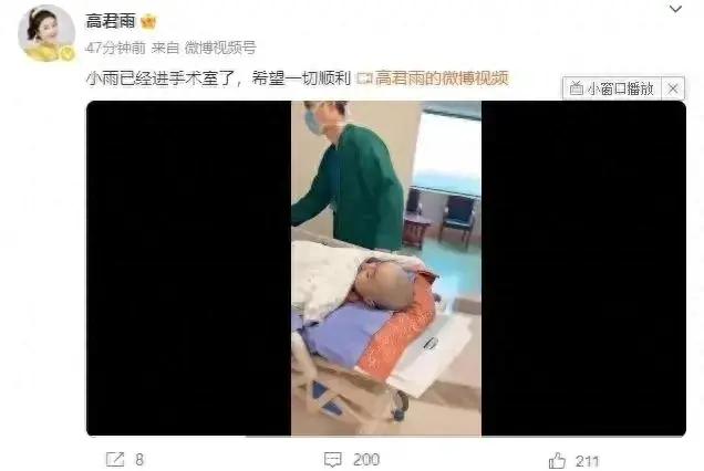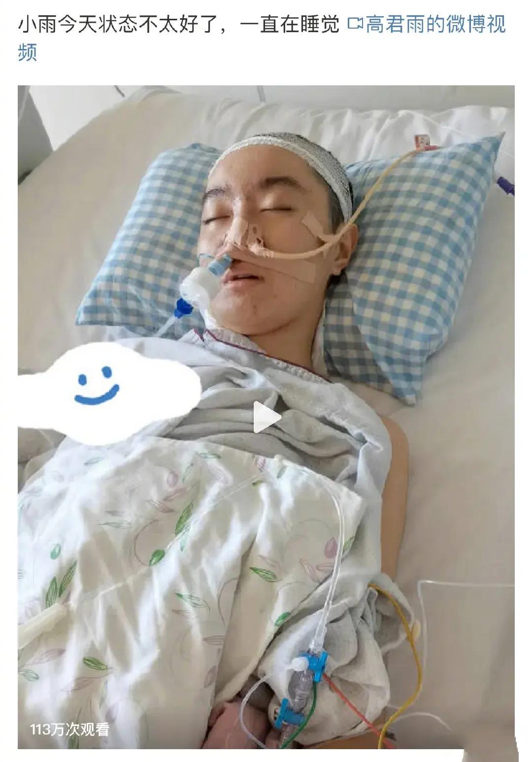 此後,賬號又發佈了進入手術室,以及術後狀態的視頻,稱小雨狀態不太好,一直在睡覺,畫面看着讓人心疼。