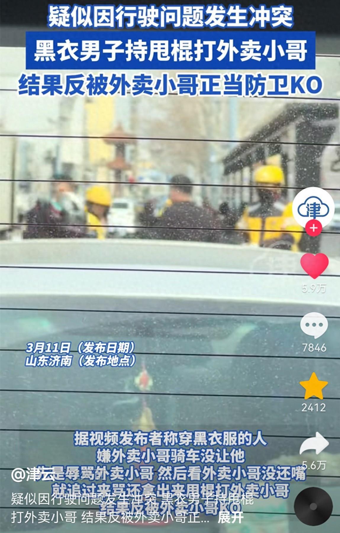 3月11日,一段外賣小哥和黑衣男子打架的視頻在網絡瘋傳。