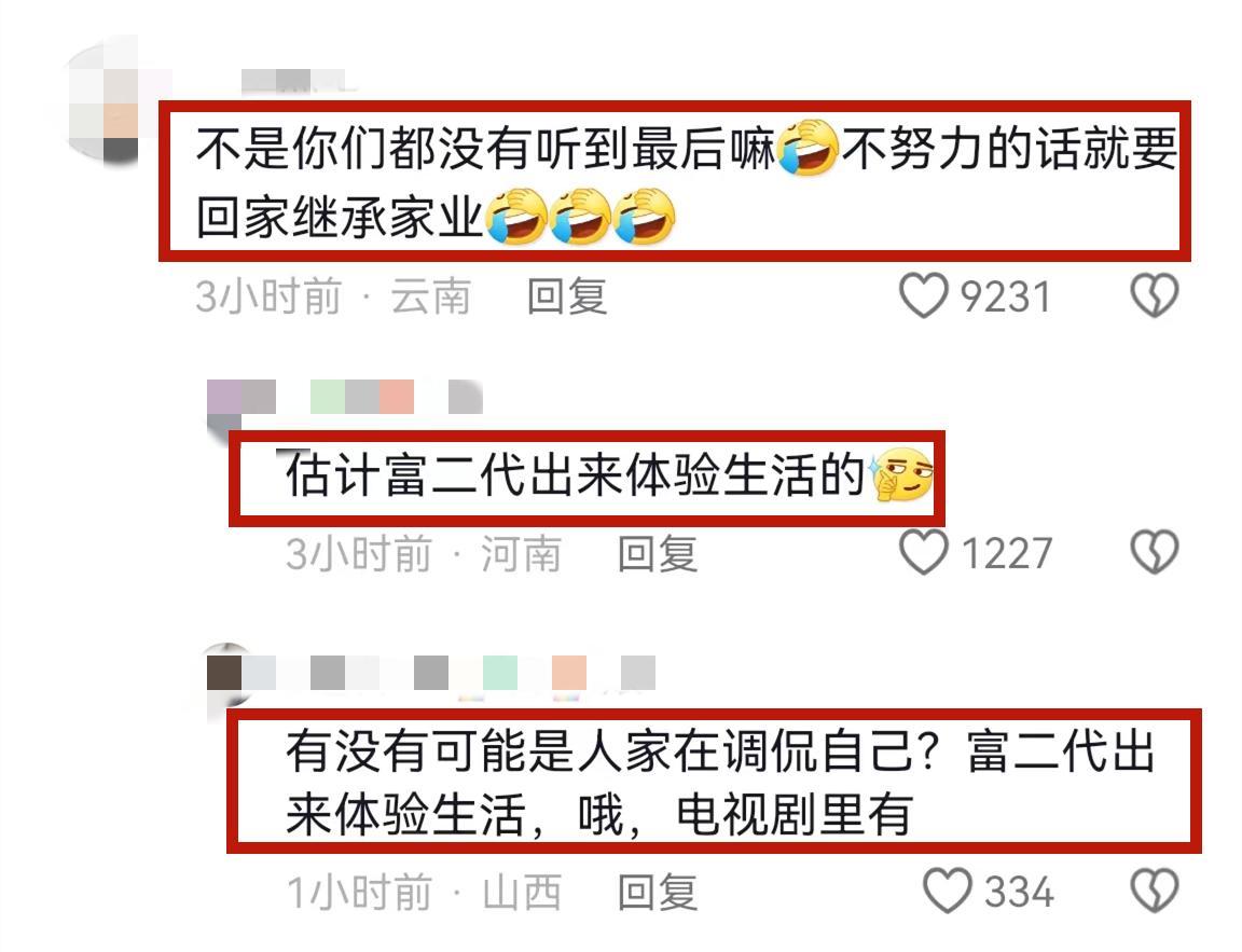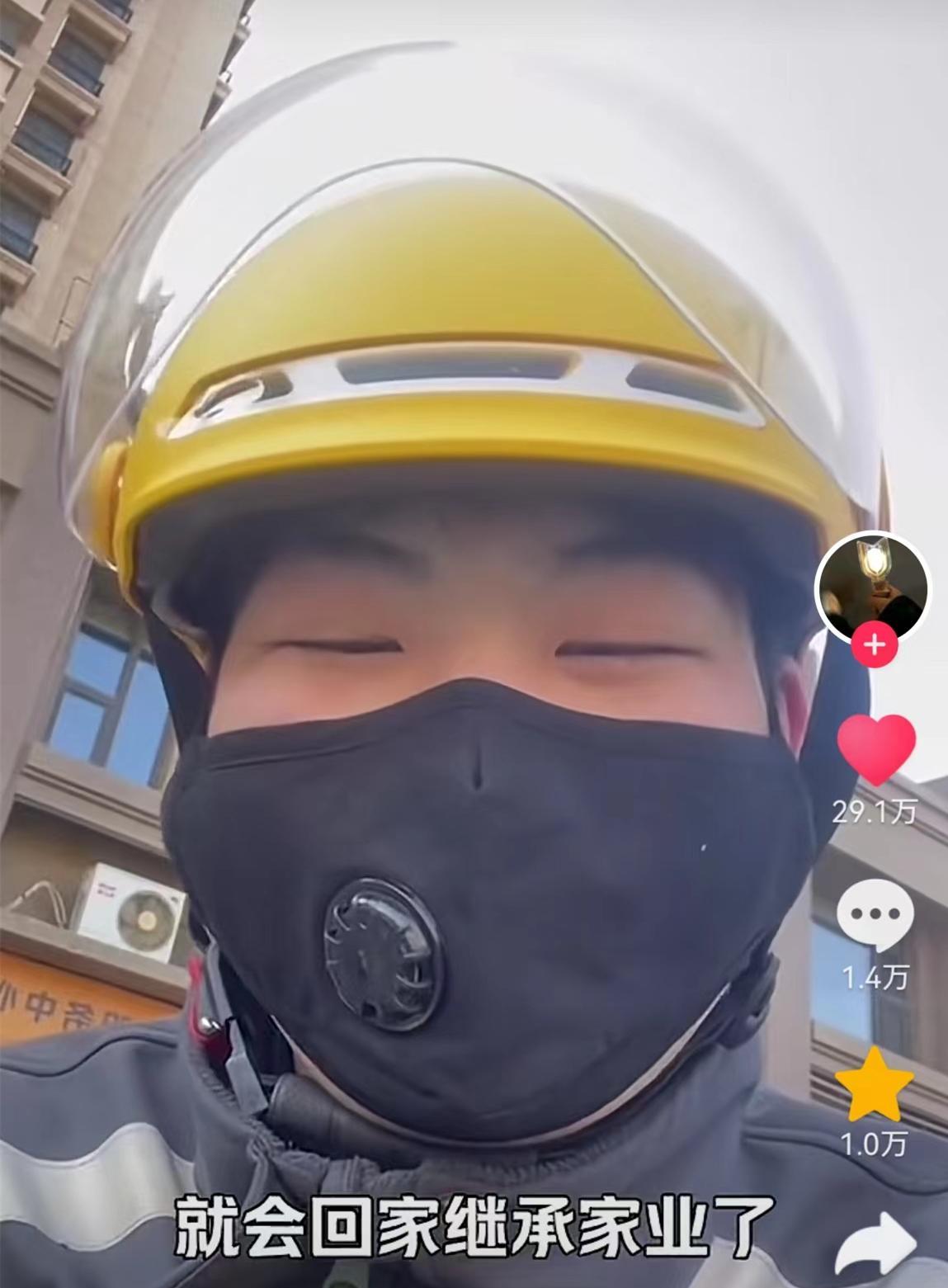 當然,也有網友的關注點不一樣,有網友關注到外賣小哥說的最後一句話,在評論區不斷問網友“難道大家沒聽到不努力就回家繼承家業嗎?”
