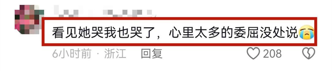 有網友直言“看見她哭,我也哭了,心裏太多的委屈沒處說。”